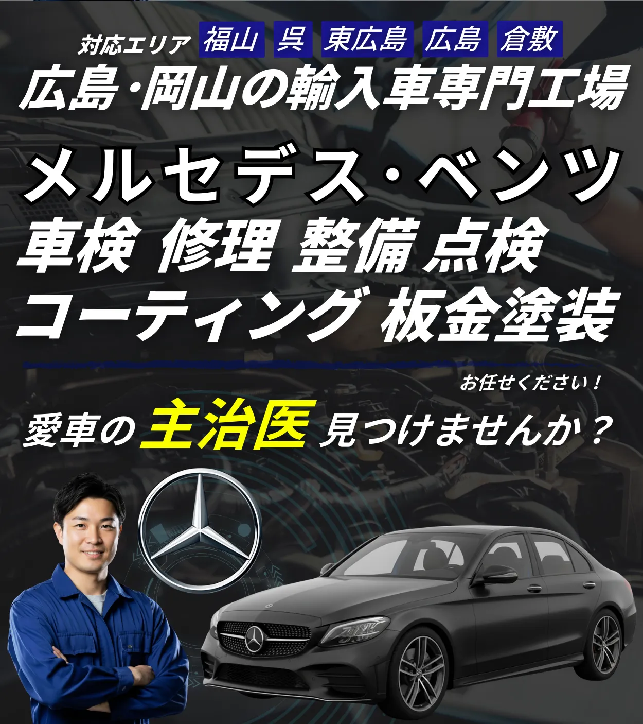 輸入車専任の整備士と専用テスター。鈑金・車検・保険までワンストップ。
